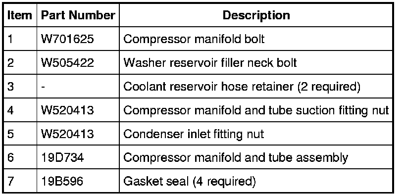 NOTICE: Do not stress or bend the aluminum lines on the compressor manifold and tube assembly to facilitate removal. Bending or squeezing the lines together may damage the welds and lead to premature failure of the line.