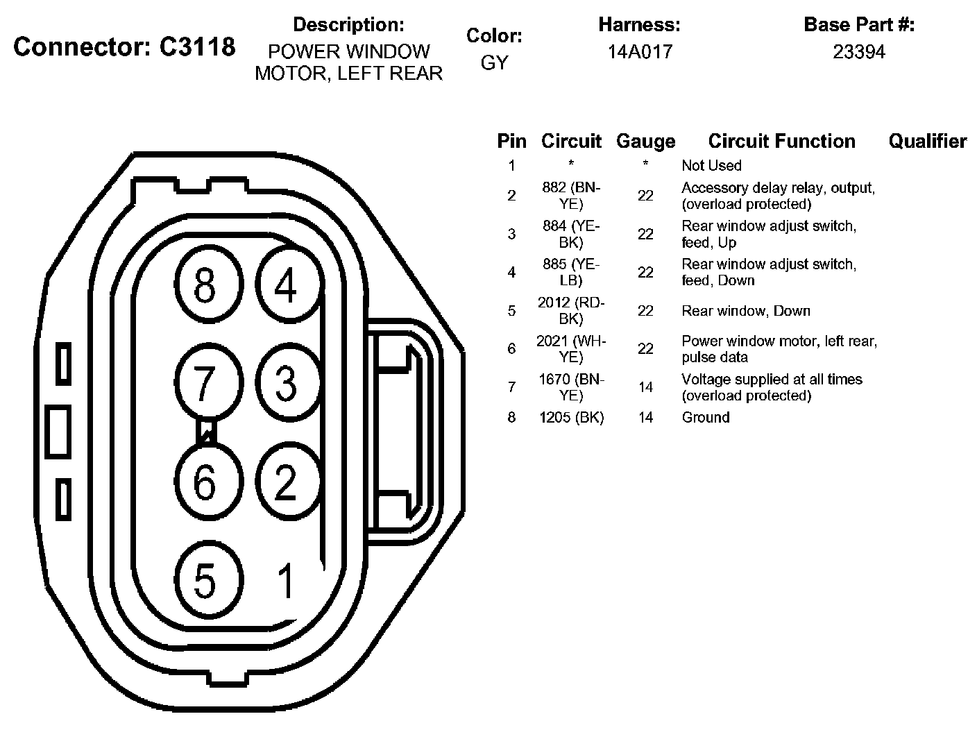 Power Window Motor, Left Rear