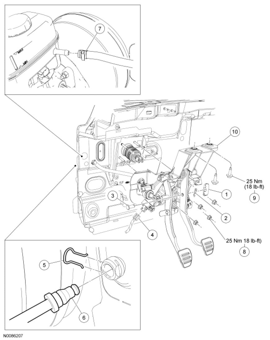 NOTE: Manual transmission pedal assembly shown, automatic transmission pedal assembly similar.