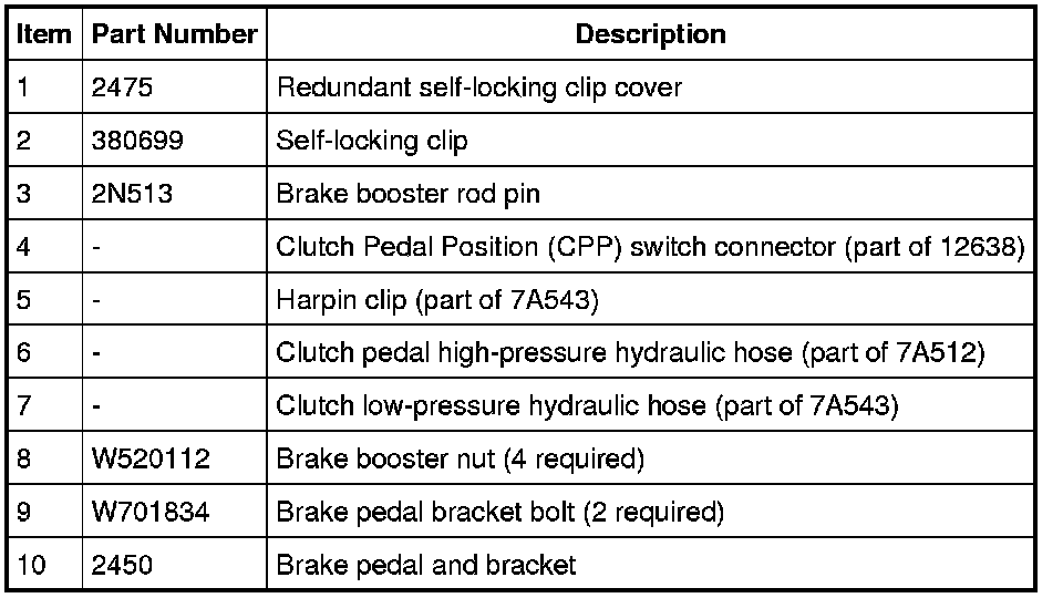 11. Remove the brake pedal bracket assembly from the vehicle.