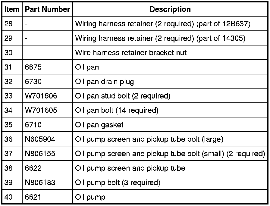 Wiring Harness Retainers, Oil Pump, Oil Pump Screen and Pickup Tube and Oil Pan