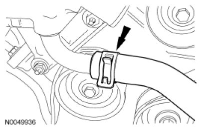 130. Connect the coolant hose to the thermostat housing.
