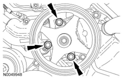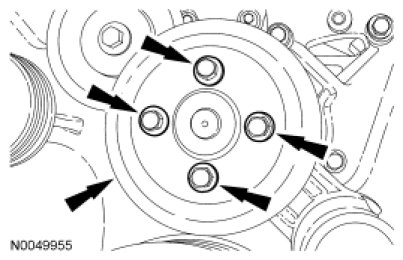 123. Tighten the 4 coolant pump pulley bolts to 25 Nm (18 lb-ft).