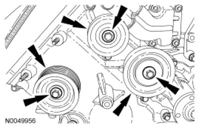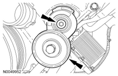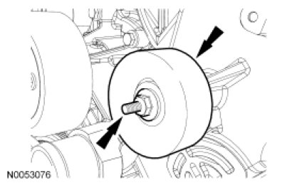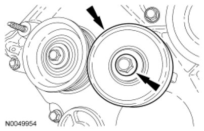 - Tighten the heavy load idler pulley (closest to centerline of engine) to 48 Nm (35 lb-ft).