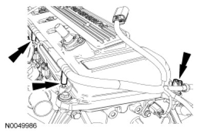 92. Attach the wiring harness retainers to the RH valve cover stud bolts.