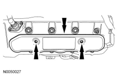 83. Install the LH coil-on-plug cover and the 2 bolts.