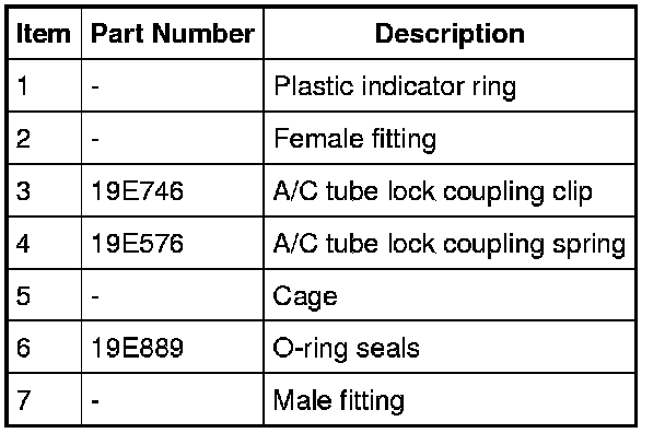 - An A/C tube lock coupling clip may be used to secure the coupling.