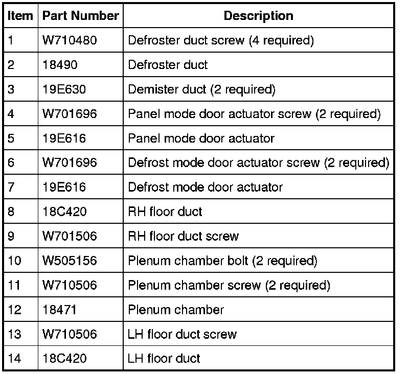 3. Remove the LH floor duct screw and the LH floor duct.