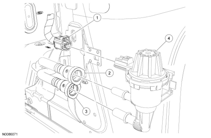 3. NOTE: The upper vapor tube has an identification tag attached on the end of tube near the quick connect coupling. If this vapor tube is removed or replaced make sure that the end with the identification tag is reconnected to the upper EVAP canister purge valve port.