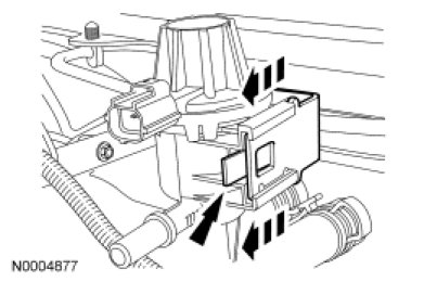 4. Depress the release tab and remove the EVAP canister purge valve from the mounting bracket.