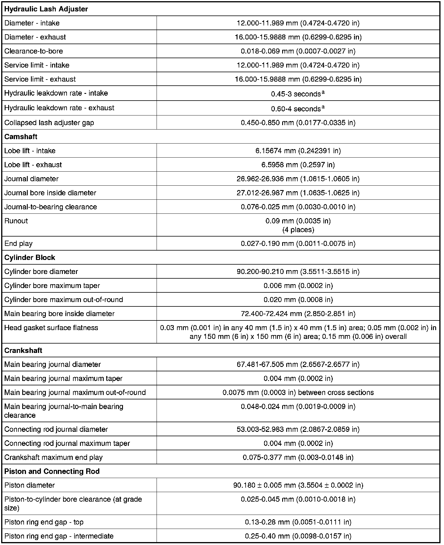 Time required for the plunger to leak down 1.6 mm of travel with 222 N force and leak-down fluid in the lash adjuster.