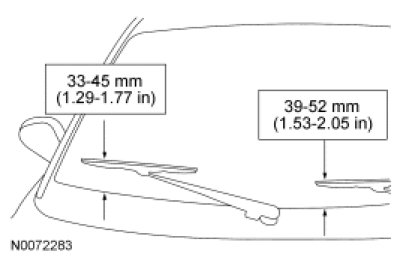 Verify that the RH windshield wiper blade is 33-45�mm (1.29-1.77 in) above the cowl weatherstrip.