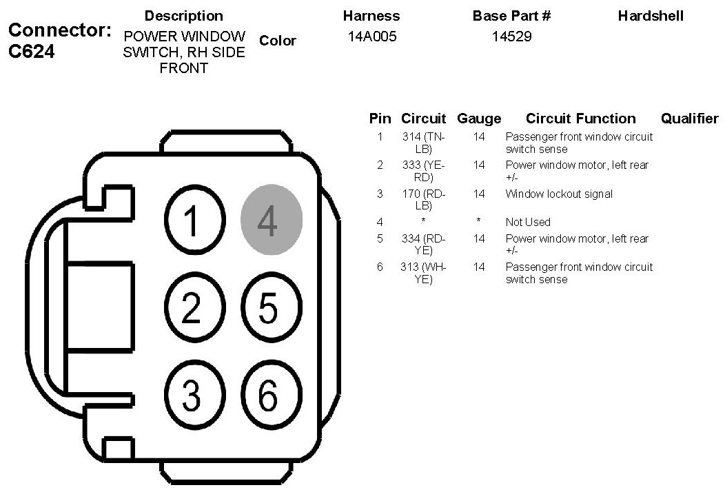 Power Window Switch, RH Side Front