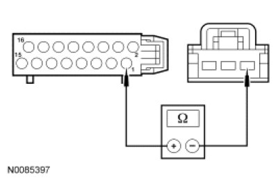 - Measure the resistance between in-line C237-1, circuit 436 (RD/LG), instrument panel harness side and in-line C237-3, circuit 600 (DB), instrument panel harness side.