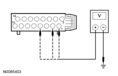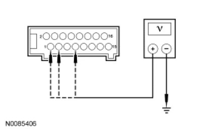 - Measure the voltage between in-line C237-4, circuit 1040 (RD/BK), instrument panel harness side and ground.