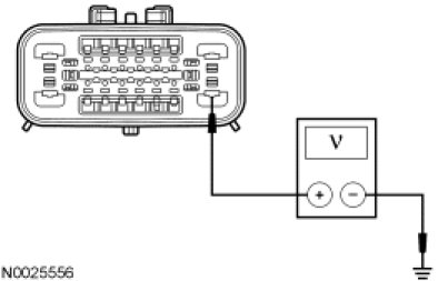 - Measure the voltage between the FSSM C3281a-1, circuit 2319 (RD/YE), harness side and ground.