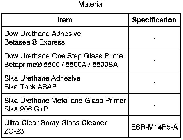 7. NOTE: Be sure to use the same brand and cure-rate products for the urethane adhesive and glass primer. Do not mix different brands of urethane adhesive and glass primer. Refer to the Material Chart in this procedure.