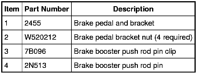 NOTICE: Do not remove or loosen the fasteners that hold the 2 brake pedal bracket halves together. Failure to follow this instruction may result in damage to the brake pedal bracket.