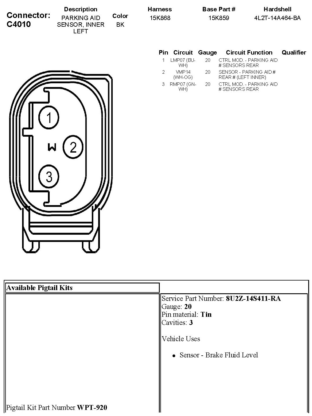Parking Aid Sensor, Inner Left