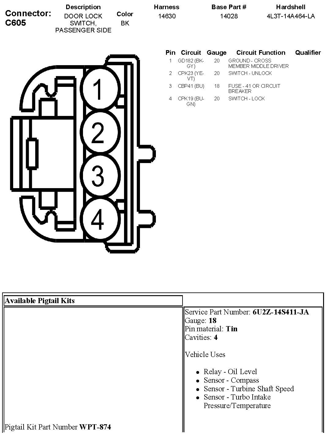 Door Lock Switch, Passenger Side