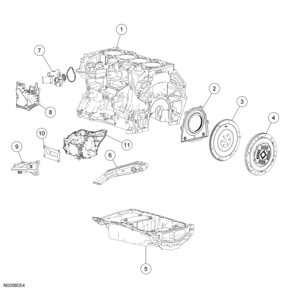 NOTICE: During engine repair procedures, cleanliness is extremely important. All parts must be thoroughly cleaned and any foreign material, including any material created while cleaning gasket surfaces, that enters the oil passages, coolant passages or the oil pan, can cause engine failure.
