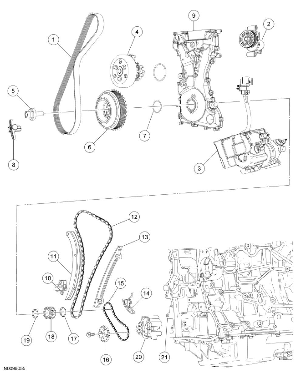 67. Install the engine front cover. Tighten the bolts in the sequence shown, to the following specifications: