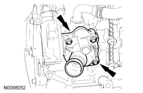 100. NOTE: Clean and inspect the thermostat housing gasket. Install a new gasket if necessary.