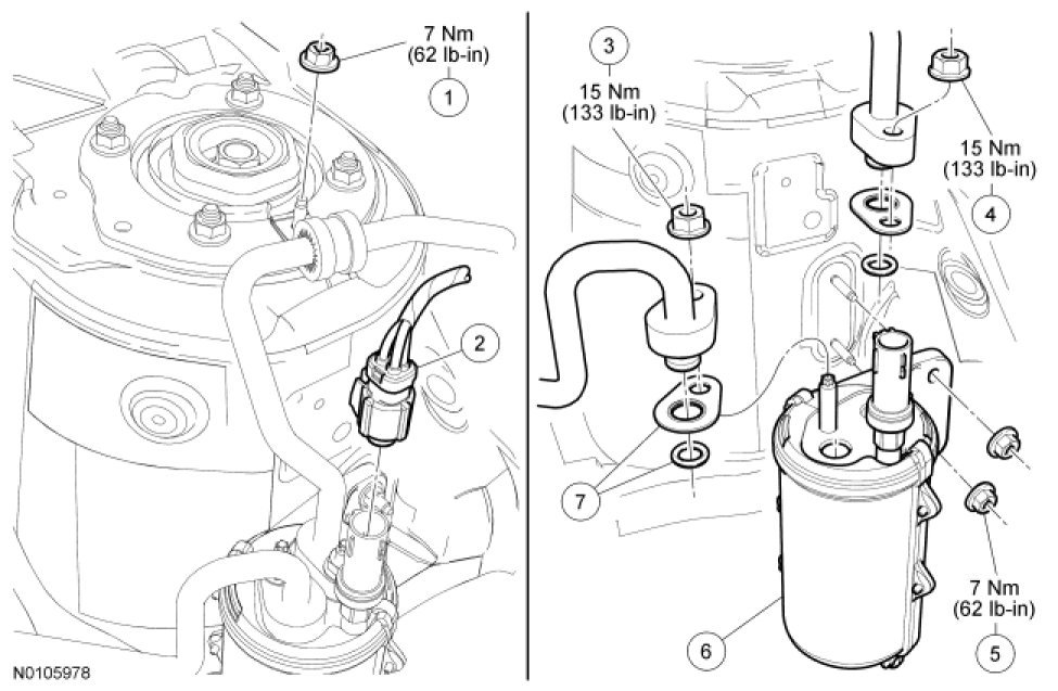 4. Remove the receiver/drier inlet fitting nut and disconnect the fitting.