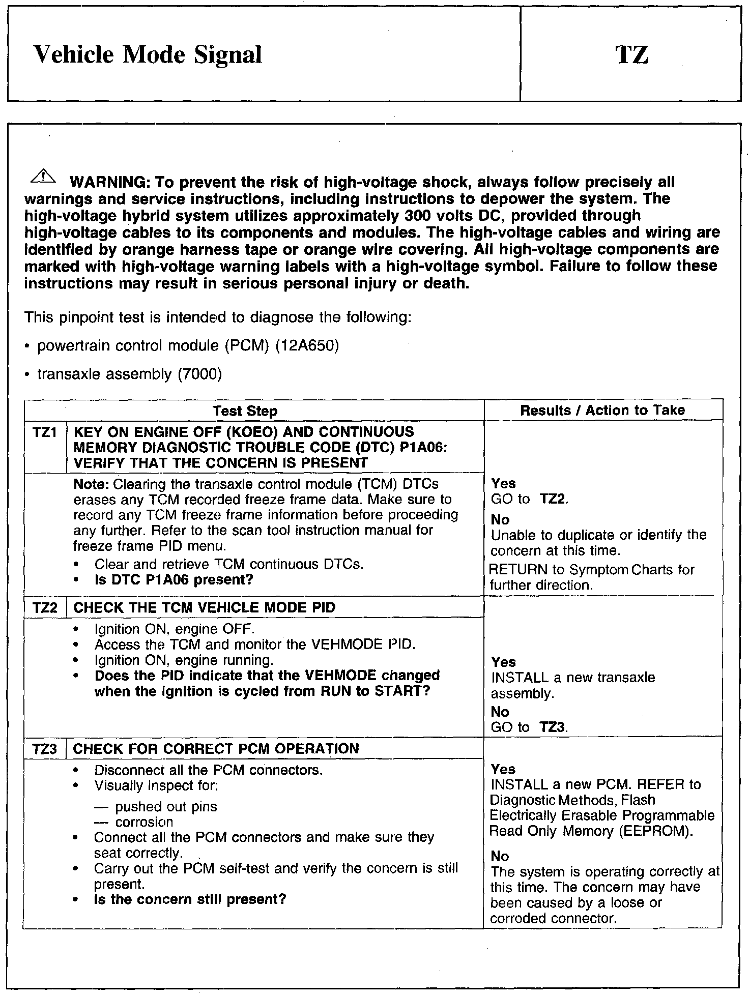 PINPOINT TEST TZ: VEHICLE MODE SIGNAL