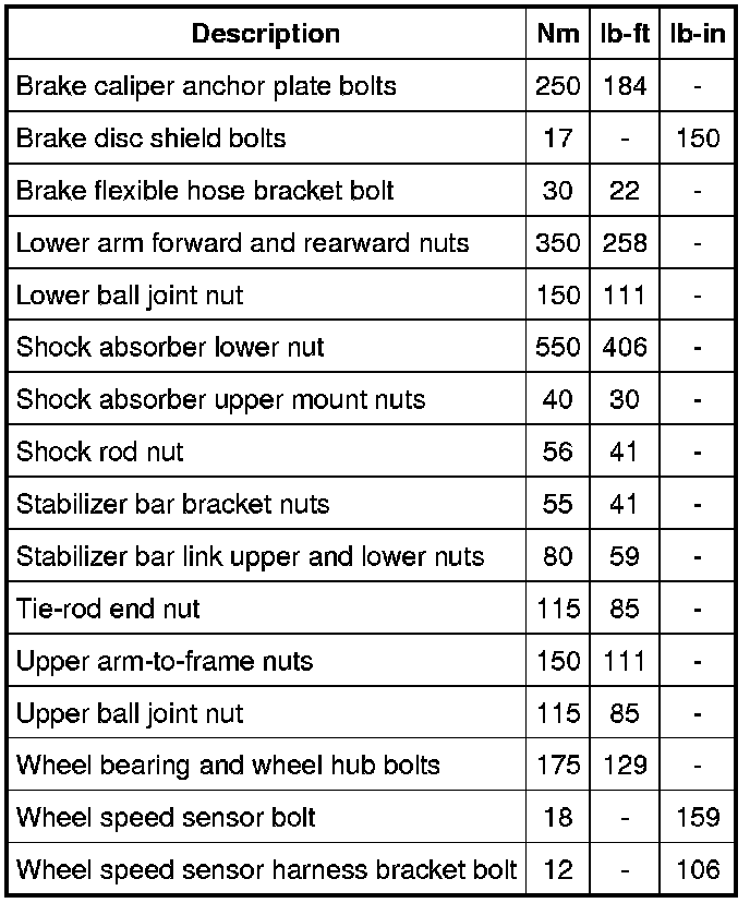 Torque Specifications