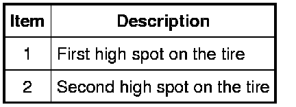 6. NOTE: If the second high spot did not follow the wheel or the tire and the runout is still not within specification, improvements may be made by rotating the tire 90 degrees (one-fourth turn).