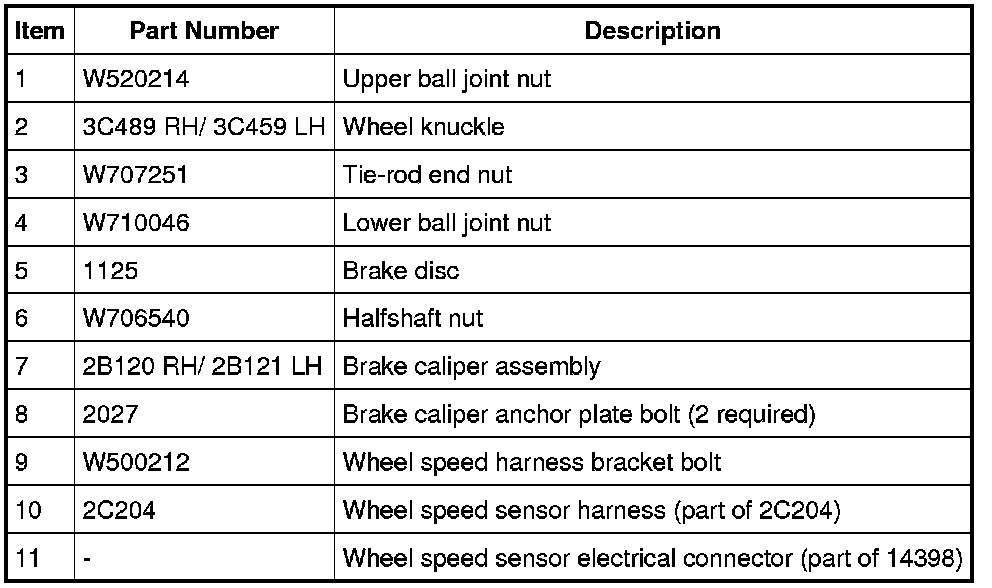 14. NOTICE: Do not use a hammer to separate the ball joint from the wheel knuckle or damage to the wheel knuckle can result.