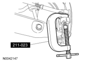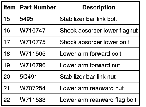 Remove and discard the lower arm forward bolt and nut and the lower arm rearward flag bolt and nut.