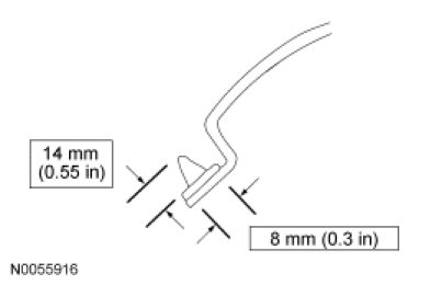 Using an appropriate tool, trim the urethane adhesive leaving a 1 mm to 2 mm (0.04 in to 0.08 in) base of original equipment urethane adhesive on the pinchweld.
