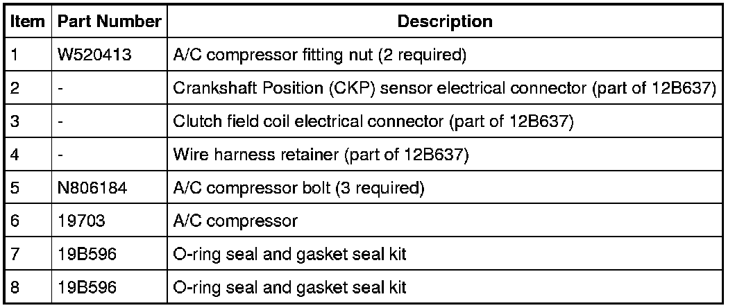 NOTE: A new A/C compressor may come equipped with an A/C clutch disc and hub, A/C compressor pulley and A/C clutch field coil already installed. If these components are not pre-installed, it will be necessary to transfer these parts from the old A/C compressor to the new compressor prior to installation of the A/C compressor if suitable for reuse.