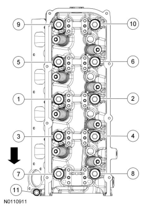 Cylinder HeadTighten the 11 bolts in 6 stages, in the sequence shown.