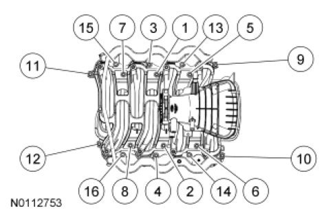 bolts and the 4 fuel rail bolts in 2 stages in the sequence shown.