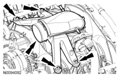 7. Install the ACL outlet pipe. For additional information, refer to Fuel Delivery and Air Induction.