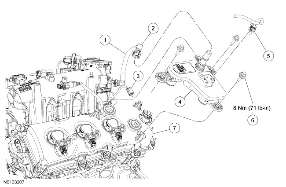 3. Disconnect the crankcase ventilation tube-to-PCV valve quick connect coupling. For additional information, refer to Fuel Delivery and Air Induction.