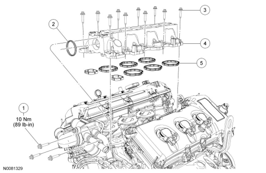- Tighten in the sequence shown to 10 Nm (89 lb-in).