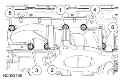 Using a new gasket, install the RH exhaust manifold and 6 new nuts. Tighten in 2 stages in the sequence shown:
