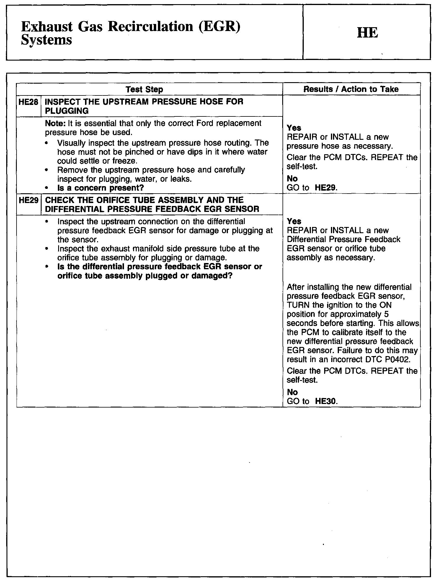 Test HE: Exhaust Gas Recirculation (EGR) Systems