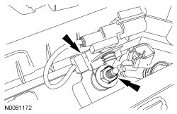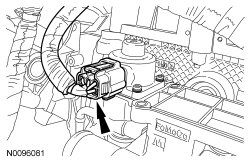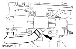 Squeeze the 2 crankcase vent oil separator tube tabs and disconnect the tube from the intake manifold.