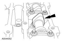 ^ Remove the bolts and the camshaft bearing caps.