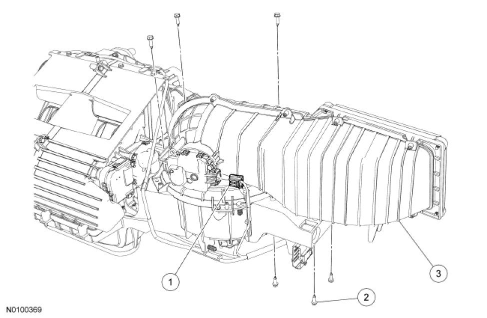 1. Remove the heater core and evaporator core housing. For additional information, refer to Heater Core And Evaporator Core Housing Heater Core And Evaporator Core Housing.