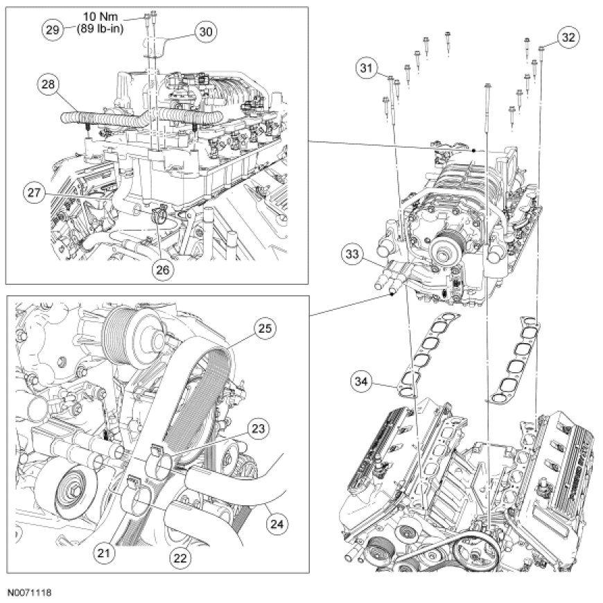 - Tighten in the sequence shown to 10 Nm (89 lb-in).