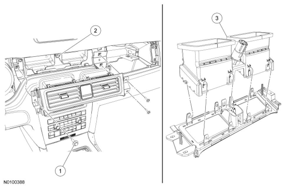 2. Remove the passenger airbag module. For additional information, refer to Restraint Systems.