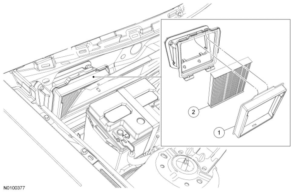 2. Using a suitable tool, detach the cabin air filter housing from the fresh air inlet duct.