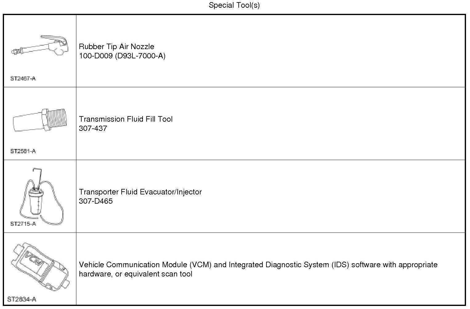 15. Add 2.84L (3 qt) of transmission fluid into the transmission fluid pan. Stop the process by releasing the air pressure and removing the Rubber Tip Air Nozzle from the end of the hose.