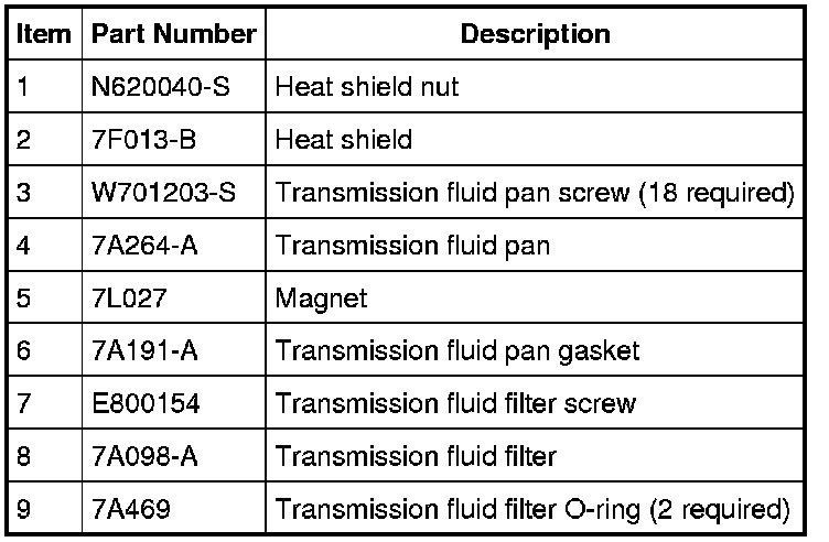 5. NOTE: The transmission fluid pan gasket is reusable. Clean and inspect for damage, if not damaged, the gasket should be reused.